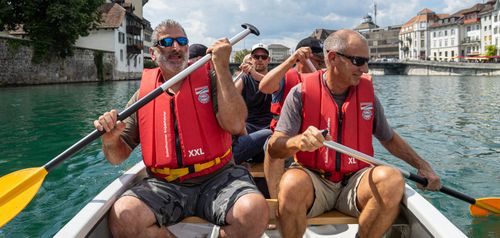 Am Nachmittag ging die Reise weiter nach Solothurn. Mit diversen Booten der "Kajakfahrer Solothurn" sind wir bis ins Attisholz-Areal gepaddelt. Vielen Dank an unseren Begleiter Pascal und an den ganzen Verein. Im Attisholz besuchten wir eine weitere spannende Führung durch das grosse Areal.